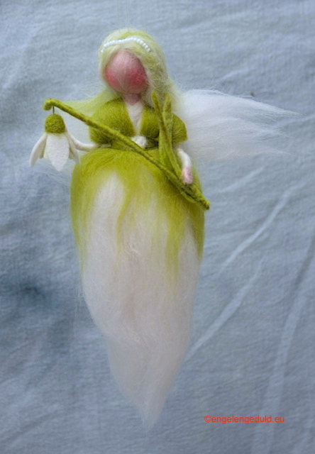 Het engeltje is gemaakt van merinowol en wolvilt.